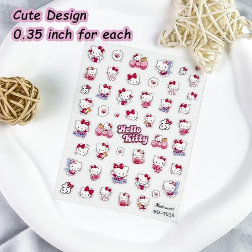 4 Pcs 5D Small Nail Art Stickers, Kawaii Accessories, Tiny Cute Nail Stickers for Girls and Women, Pink Nail Supplies, Kids Nail Stickers, Pegatinas Para Uñas