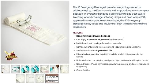 These “Israeli Bandages” were private labeled for us by the same company that makes them for the US Military .The Israeli bandage is an innovative, combat proven first-aid device for the staunching of blood flow from traumatic hemorrhage wounds in pre-hospital emergency situations. This 4 inch wide, all-in-one device consolidates multiple first-aid devices. This remarkable design allows the user to apply the bandage to them,selves with one hand if necessary.