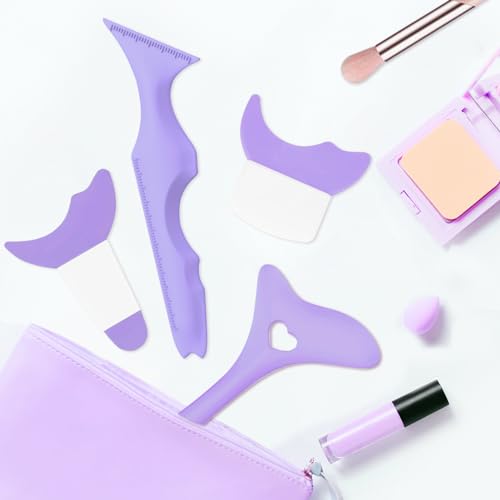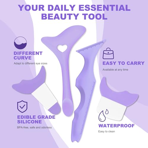 4Pcs Eyeliner Stencils, Silicone Winged Tip, Multifunctional Mascara Shield for Eyeshadow and Eyelashes, Professional &Quick Cat Eye Makeup Tool for Beginners (Purple)