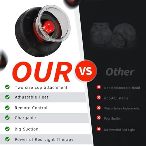 【Easy To Use & Reusable】 The electric cupping therapy set is flameless, lightweight, portable, easy to reuse and operate for home massage. Relax your body anytime and anywhere with our electric cupping massager. Electronic cupping set includes 1 cupping machine, 2 size cups,Type-C charging cable, remote control and instruction.