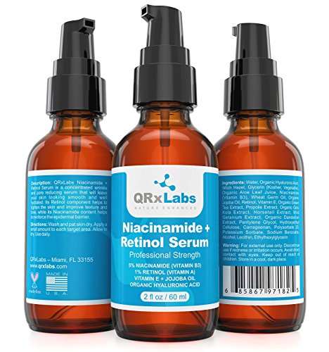 The QRxLabs Niacinamide + Retinol Serum may be the solution you have been wishing for. It is an advanced anti-aging serum that combines Niacinamide (which is a form of Vitamin B3) and Retinol, two proven ingredients, with Organic Aloe Vera, Vitamin E, Jojoba Oil, Hyaluronic Acid and a cocktail of natural extracts, resulting in a thick, rich, highly potent serum that will blow you away.