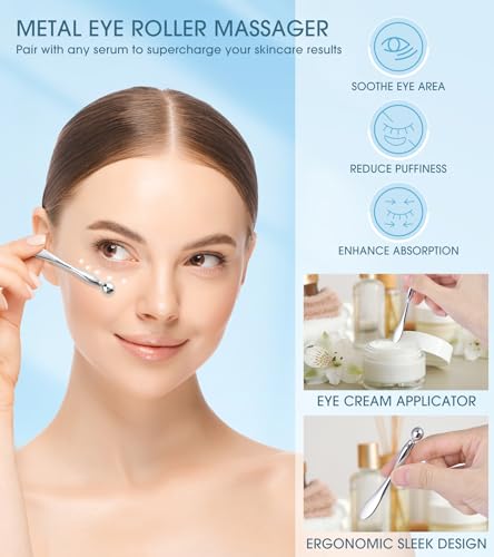 ✨️【METAL EYE ROLLER MASSAGER】The metal eye massage stick included in the set can be used as an eye cream applicator and an eye roller massager to soothe the eye area, reduce puffiness, and enhance absorption.