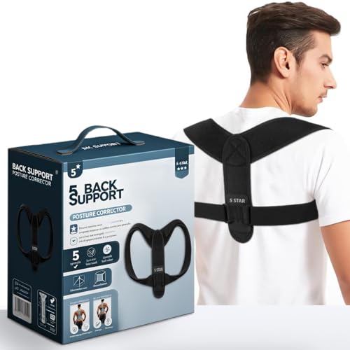 5-Star Posture Corrector for Men & Women, Adjustable & Breathable Upper Back Brace, Adjustable Back Straightener Support for Neck, Shoulders & Back Pain Relief, Hunchback Correction
