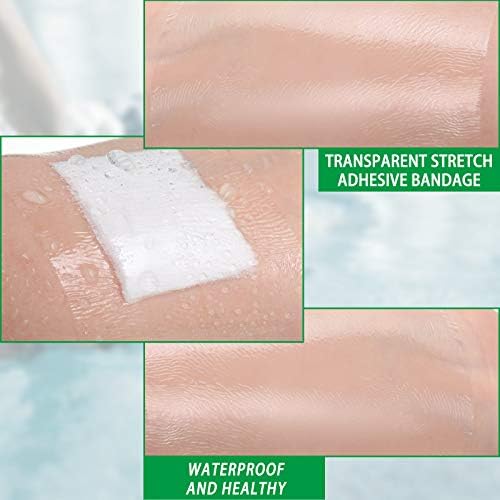 Waterproof film bandage: the transparent stretch adhesive bandage allows you to shower or swim as usual, which can avoid inconvenience for your daily routine; Its large size can fit on the chest, back and legs or other body parts
