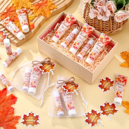 50 Sets Baby Shower Hand Cream and Lip Balm Gift Bulk, Baby Shower Party Favors Wedding Bridesmaid Guests Gift Supplies with 50 Organza Bag 50 Thank You Tag (Maple Leaves)