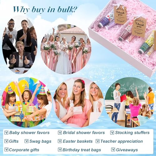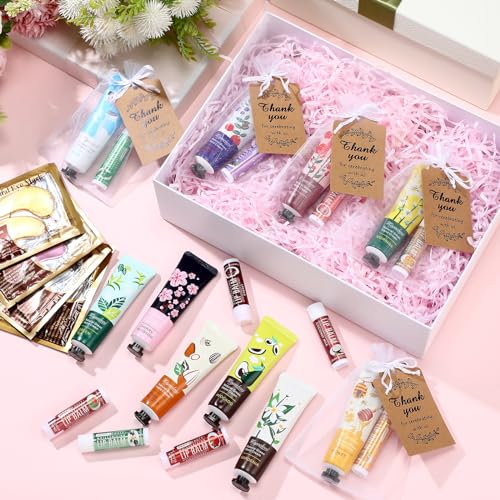 50 Sets Scented Hand Cream and Lip Balm Under Eye Patches with Organza Bag Thank You Card Bridal Shower Gifts for Guests Wedding Favors Thank You Gift for Coworker Women Men Employee Volunteer