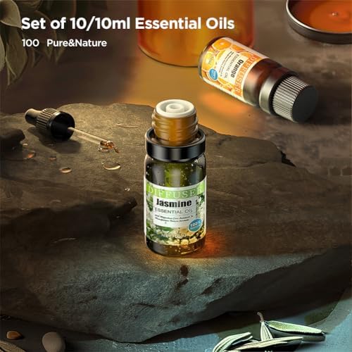 500ML Aroma Diffiser with 10 Essential Oils, Essential Oil Diffuser with Remote Control, Ultrasonic Humidifier with for Large Room, 4 Timer Setting, Auto Shut-Off,14 Color Lights