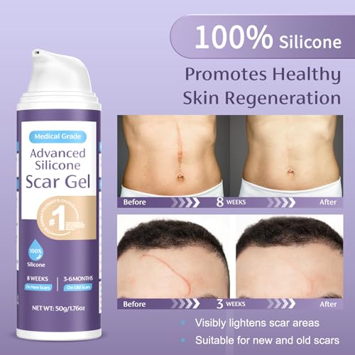 50g Advanced Scar Cream Gel, 100% Medical Grade Silicone Scar Gel, Scar Removal Cream for Surgical Scars, C-Section, Stretch Marks, Acne, Injury, Keloids, Effective for Both Old and New Scars