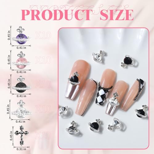 50PCS 3D Nail Charms, 40pcs Planet Nail Rhinestones and 10pcs Cross Nail Art Charm Shiny Nail Jewelry Gems for Nail Art Decoration Nail Jewelry Accessories DIY Crafts