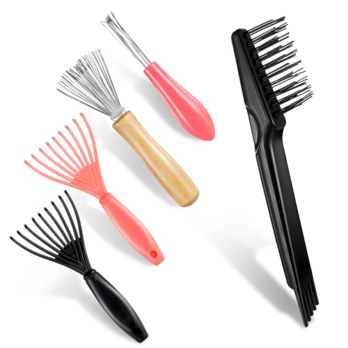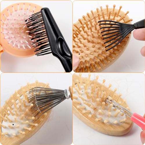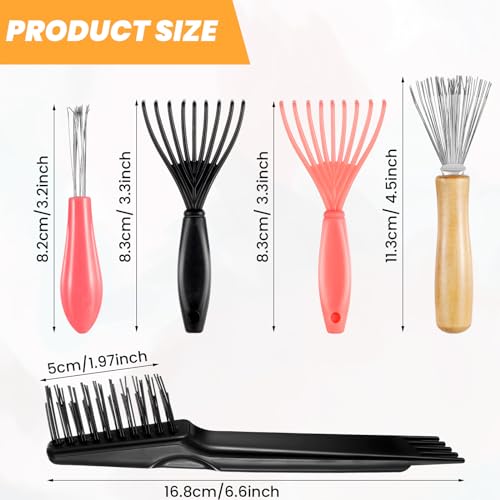 Reasonable combination: 2 plastic hairbrush cleaner tools, 1 black double-headed comb cleaner, 1 stainless steel wooden handle brush, 1 stainless steel plastic handle hair brush cleaner