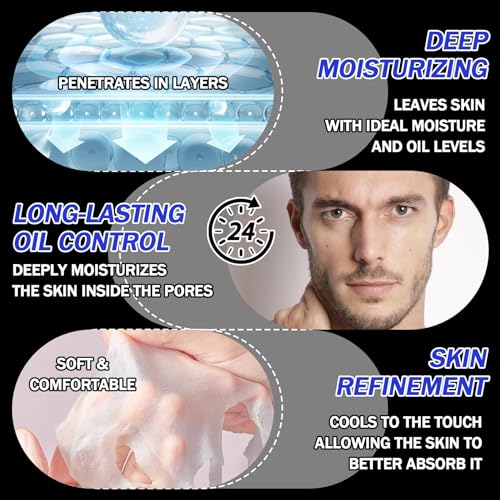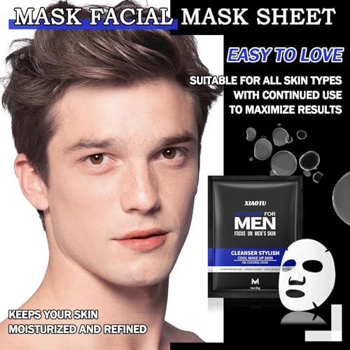 5PCS Men’s Oil Control Face Mask Skincare Set,Refreshing Sheet Mask Set,Oil Control Facial Masks for Men,Moisturizing Face Mask Skin Care Set