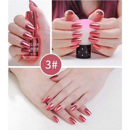 6 Colors Metallic Nail Polish Mirror Nail Polish Reflective Manicure Mirror Effect Glossy Nail Lacquer Kit 18ML