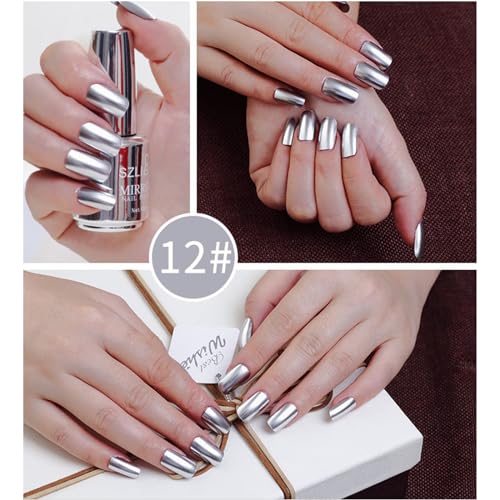 Hacaus 6 Colors Metallic Nail Polish Mirror Nail Polish Reflective Manicure Mirror Effect Glossy Nail Lacquer Kit 18ML