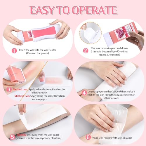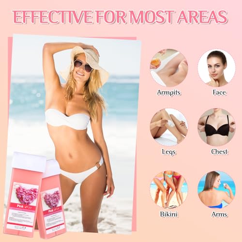 Easy to Use Wax Roller: the wax roller kit for hair removal design large fixed roller head is ideal for waxing large areas such as the chest, arms, legs, and bikini area; enhances convenience and efficiency during the hair removal proces