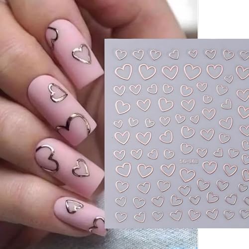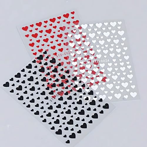 6 Pcs Valentine’s Heart 3D Nail Art Stickers Set – Mixed Sizes, Adhesive Decal Polish Slider, Heart Design for Nail Art Decorations, Wrap Nail Foil Sticker Tips