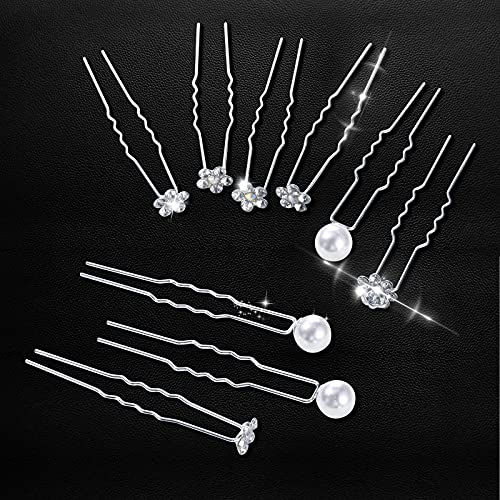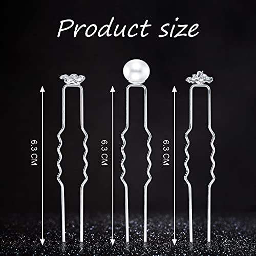 60 Pieces Bridal Wedding Hair Pins Pearl Hair Pins U Shape Rhinestone Hair Pins Bridal Rhinestones Hair Pins Hair Accessories for Bridal Women and Girls (Elegant Style)