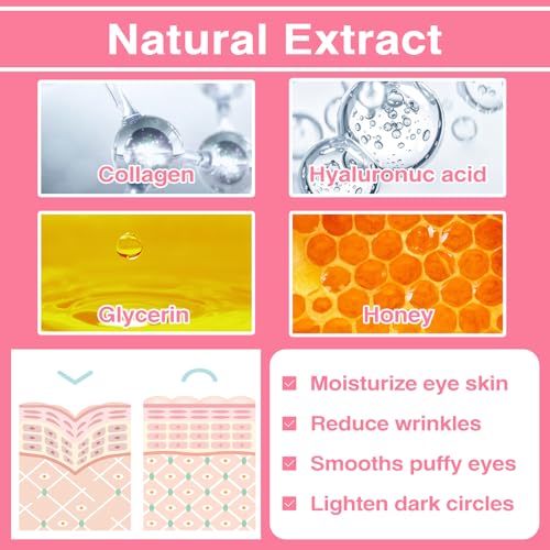 💗【Safe & Natural Ingredients】Under Eye Skincare with Collagen, Hyaluronic Acid, glycerin and honey, which can effectively improve skin elasticity and firmness, Rejuvenating Eye skin.
