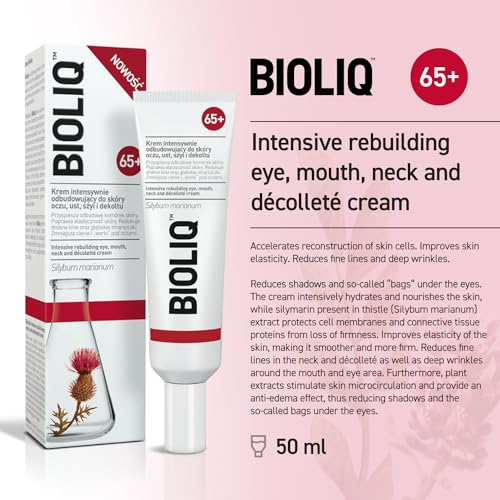 65+ Intensive Rebuilding Cream for Eye, Mouth, Neck, and Décolleté – Accelerates Skin Cell Reconstruction – Improves Elasticity, Reduces Wrinkles, Shadows, and Bags – with Silymarin – 30ml