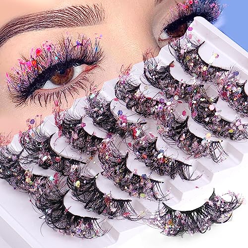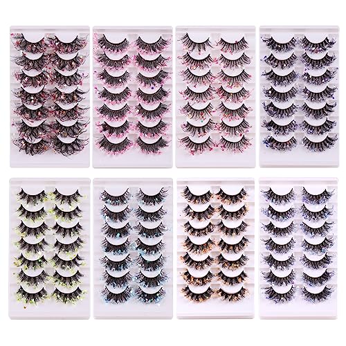 7 Pairs Unique Shining Colored Eyelashes Glitter Colorful False Eyelashes Dramatic Halloween Party Rainbow Lashes Beauty and health Makeup tools/accessories Eyelash extensions Eye cosmeticFeatures:Brand new and Satisfy your choice of eye makeup to create a big eye makeup. Suitable for all occasions, be the most dazzlings person!Vividly and soft. Perfect for a party, the curling holiday lashes are full of high-quality imported fibers, soft as real mink-eyelashes, extremely comfortable to use, bringing you a better eye makeup experience!The effect is realistic, wearing the same effect as eyelashes extensions! And easy to operate.Since the lashes are handmade, there will be a little variation between batches, which is normal.Specifications: