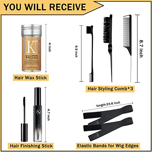 The set included:elastic bands for wig*2 + 2.75oz hair wax stick + hair finishing stick + hair comb*3.It is the perfect solution to your hair styling needs.
