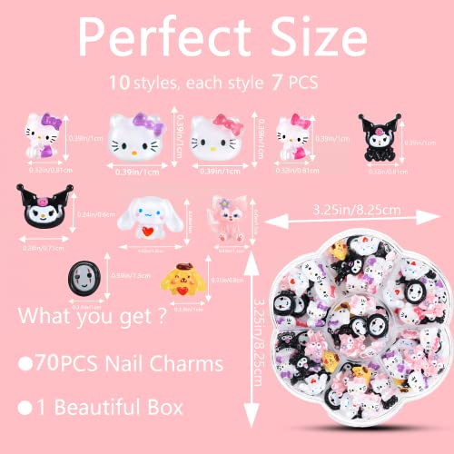70 Pcs Nail Charms, TemBelle Slime Charms, Resin Flatbacks 3D Nail Charms for Nail Art Decorations Supplies, DIY Art Nail,Hair Clips, Refrigerator Magnets, Dress Up and Phone Cases Etc (10 Colors)