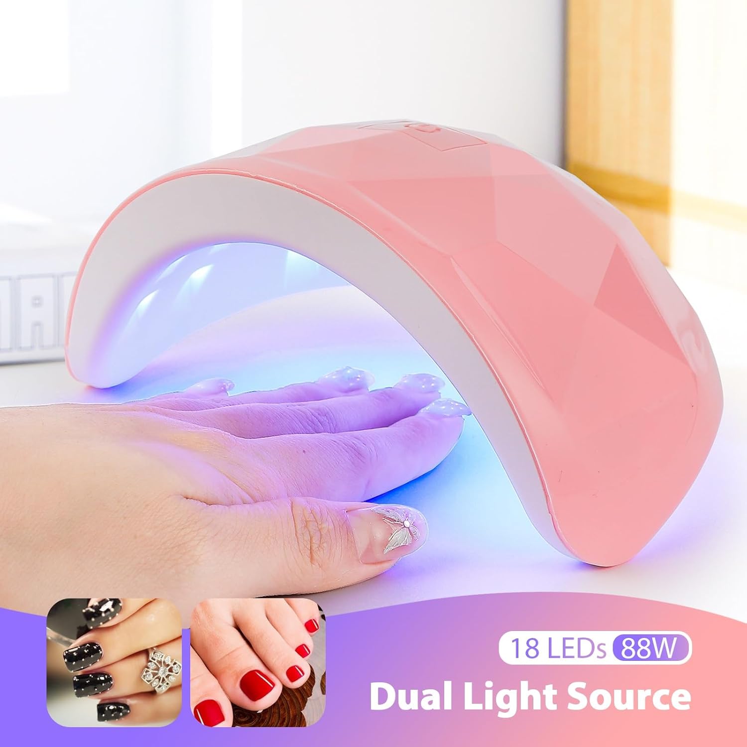 88W Nail Dryer UV LED Nail Curing Lamp for Gel Nail Polish, Professional Nails Art Tools Accessories for Home Salon, Small Size, 2 Timer Setting (Pink)