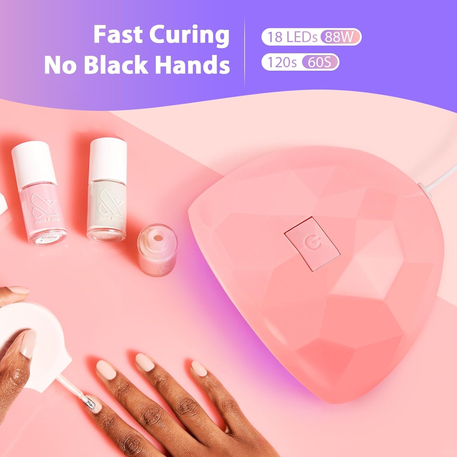 🔥【Effective Dry】88W high power nail dryer has 18 pcs multi-angle lamp beads evenly distributed, and the light is soft (365nm-405nm). You can dry your nail polish quickly and efficiently and do not worry about the sides not curing.