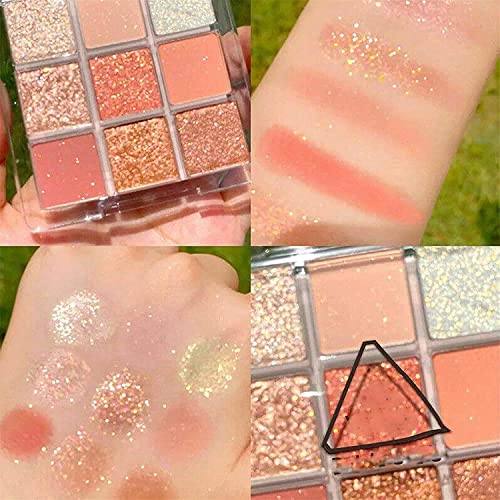 Professional 9 Color Eyeshadow Palette: Superior quality ingredients, waterproof matte and glitter eyeshadow pigments, updated ultra-micronized and luxuriously pigmented formula. No powder flying around! Super staying power and blendability.