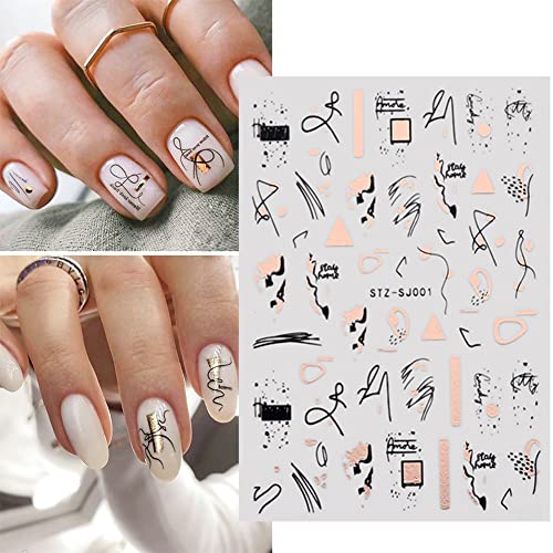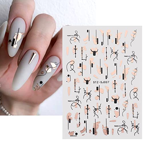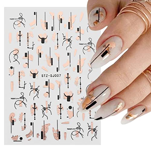 9 Sheets Rose Gold Nail Art Stickers Decal,Retro Rose Gold Nail Foil Decals Nail Supplies 3D Self-Adhesive Graffiti Fun Abstract Leopard Print Botanical Line Nail Design Luxury for Nail Art Decoration