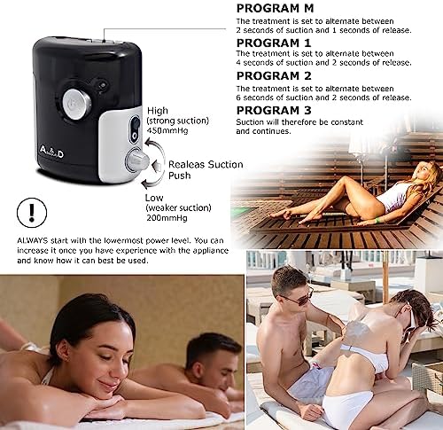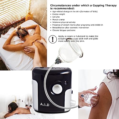 A & D Beauty Cupping Therapy Set, Facial Dermo Vacuum Massager, Experience Electric Cupping Massage, Cellulite Treatment, Intensive Suction Massage with 3 Suction Cups + Cup with Roller, Back Massage