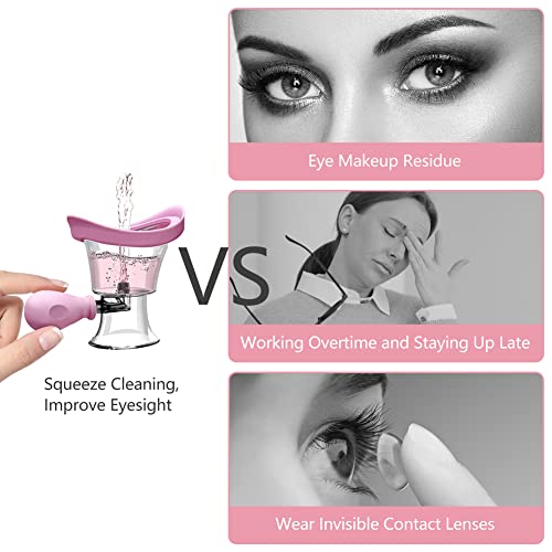 Abnaok Eye Wash Cup,Eye Wash Bath Kit – Silicone Eye Cup for Effective Eye Cleansing Transparent with Storage Container,Manual air Pressure Eye Cleaning Cup (Pink)