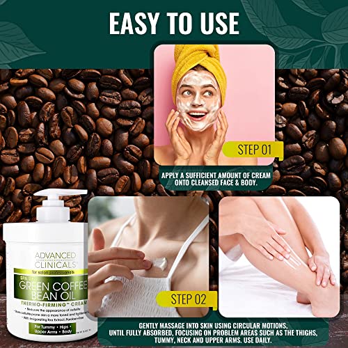 Advanced Clinicals Green Coffee Bean Lift & Slim Body Cream Skin Care Anti Cellulite Cream | Caffeine Body Lotion Balm To Firm, Tighten, & Hydrate Look Of Legs, Arms, Tummy, Butt, & Thighs, 16 Ounce