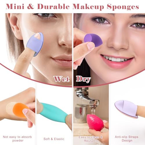 AHIER 50 Pcs Mini Makeup Sponge Set Include 40 Pcs Mini Beauty Blender & 10 Pcs Finger Powder Puff, Random Colored Small Beauty Blender Makeup Sponges Facial Makeup Tools for Foundation Concealer