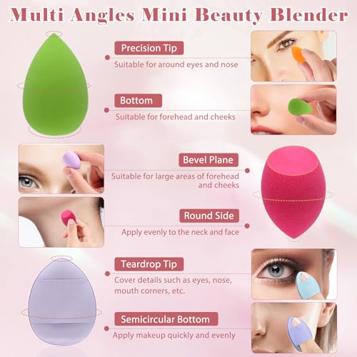 ⏭【Exquisite & Compact】Our mini makeup blender sponge is only 0.79-1.57 in, small enough to fit perfectly on your fingers, modifying the detailed makeup around the eyes, mouth, and nose of the face.