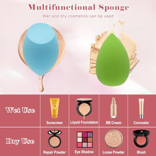 ⏭【Wide range of uses】The mini makeup sponge set is perfect for foundation, sunscreen, eye shadow, contour powder, blush and other cosmetics, and can be used wet or dry. A nice gift for mothers and wives, girlfriends, and daughters.