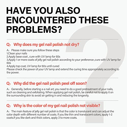 LONG-LASTING SHINE – AILLSA jelly gel nail polish needs to be cured under L E D/U V light, under the correct use steps, it can last for 21-28 days and keep the shiny luster. You’ll never have to worry about your nails peeling off while showering and doing housework. Let AILLSA serve you a longer time!