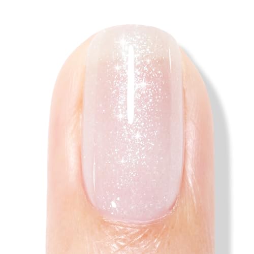 AILLSA White Glitter Gel Nail Polish Shimmer Silver Neutral Gel Polish Natural Nude Color Translucent Jelly Nail Polish Milky Sparkle Soak Off U V Gel Polish for Nail Salon at Home 0.51 Fl Oz /GB64