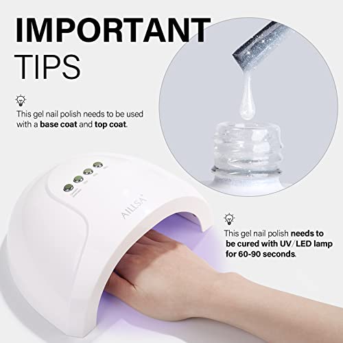 SHIMMERING JELLY STYLE – AILLSA adds countless glittering particle sequins to this translucent milky white gel nail polish, You can use it not only as a regular glitter gel polish, but also as a sparkle top coat apply with any base color you like. The beautiful effect of the overlay will make the original understated and gentle nude color derive an unexpected new surprise, making you glamorous in life, work and dating!