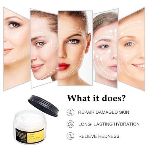 【Snail Mucin 92% Repair Cream 】Snail Mucin 92% Repair Cream Contains 92% snail mucin (also known as snail secretion filtrate) to form a moisture barrier to nourish, hydrate and soothe the skin. This daily multi-purpose cream spreads easily on the skin for long-lasting hydration and restores skin radiance