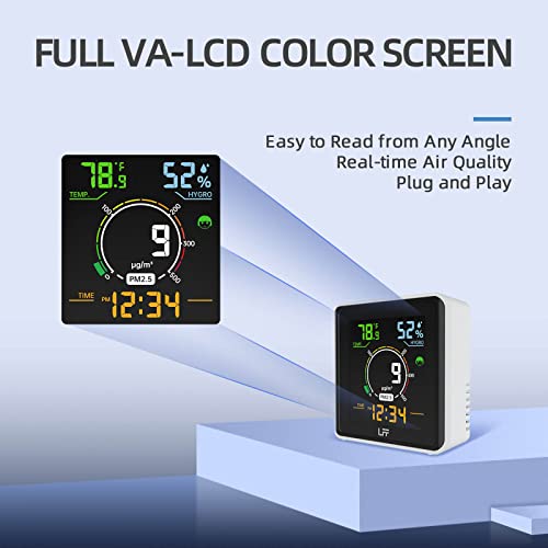 Air Quality Monitor, PM2.5 Detector Indoor Air Quality Monitor, Temperature Tester, and Humidity Meter, Real Time Color Display with Backlight
