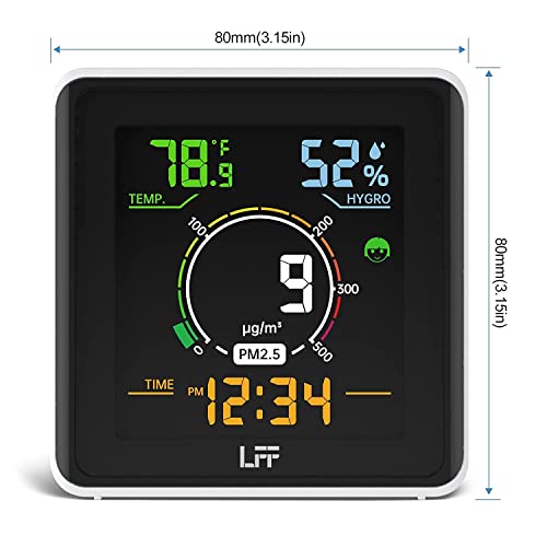 PROFESSIONAL PRECISION DESIGN – This indoor air quality meter has advanded high-quality sensor that reflects air quality by detecting PM2.5 particulate matter. Reasonable inlet and outlet duct design enables internal sensors to accurately analyze each particle. Update PM2.5 index every 5 seconds and temperature and humidity every 30 seconds, more comprehensive understanding of the air quality.