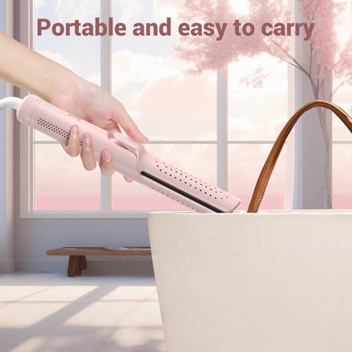 Airflow Hair Straightener, Quico 360° Pro Airflow Professional Styler Curling Iron and Hair Straightener 2 in 1, Recovers Damaged Hair with 360° Ionic Cool Air, 5 Adjustable Temp, Dual Voltage, Pink