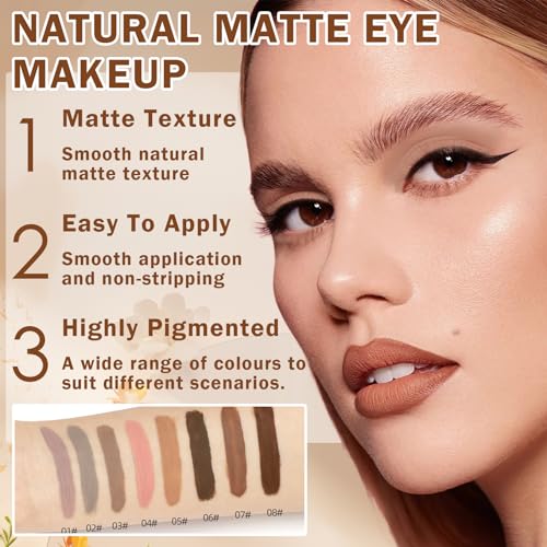 【Highly Pigmented】Matte eyeshadow is formulated with high-quality pigments,high colour development and strong coverage,which naturally deepens the eye contour and enlarges your eyes,making your eyes deep and charming.