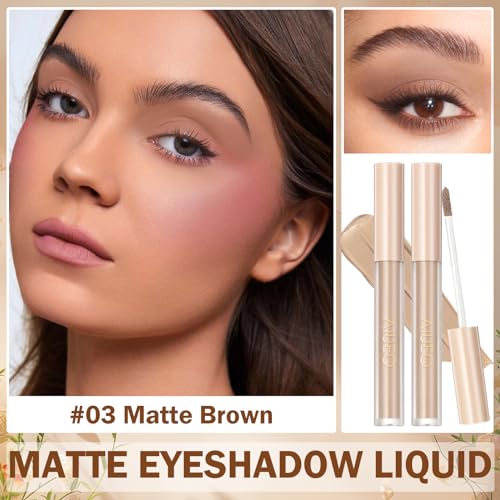 AIUEO 2PCS Liquid Eyeshadow Matte Eyeshadow Stick Smooth Cream Eyeshadow Waterproof Long Lasting Liquid Eyeshadow Makeup for Women Girls-Matte Brown