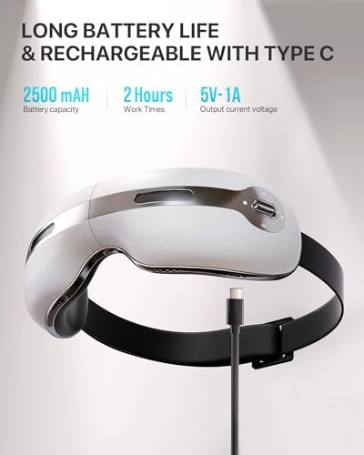 🎁【Long battery life】: ALLJOY eye massager adopts universal Type-C charging port, 2500mAh high-capacity battery, can be used 6-10 times on a single charge, and can be used for a long time without charging. This makes it ideal for use at home, in the office, or while traveling.