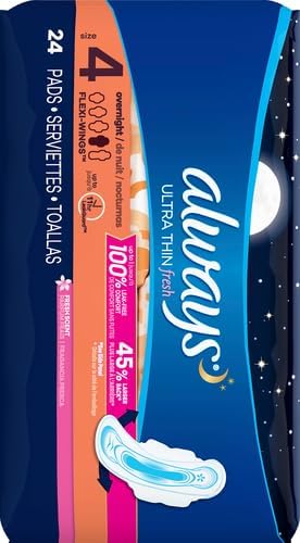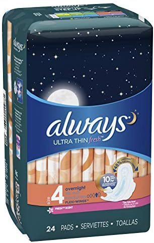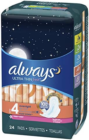 Always Ultra Thin, Size 4, Overnight Pads With Wings, Scented, 24 Count