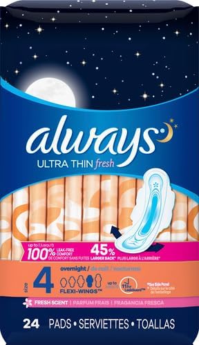 ALWAYS Ultra Thin, Size 4, Scented Overnight Pads With Wings have a flexible design for ALWAYS’ best nighttime protection
