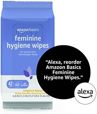 Alexa voice shopping enabled: to place your next order, just say, “Alexa, reorder Amazon Basics Feminine Hygiene Wipes.”