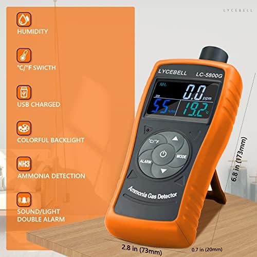 🐓【 Long Service Life 】The ammonia detection sensor is designed according to the principle of electrochemistry. The LC-5800G sensor lasts one year longer than other common sensors. With backlight LCD display and low battery indicator.