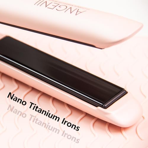ANGENIL Pro Titanium Flat Iron Hair Straightener, Anti-Scald Dual Voltage Straightening and Curler 2 in 1, Negative Ion Round Pink Hair Straightener with Heat Resistant Silicone Mat, 15s Fast Heating